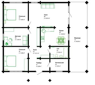 Современная европейская архитектура этого дома из профилированного бруса удивит своей красотой и элегантностью. Удобный и практичный во всех отношениях. Интересные и притягательные геометрические формы будут радовать взгляд при каждом возвращении в дом, а грамотная планировка поможет органично и со вкусом заполнить пространство этого дома из бруса.