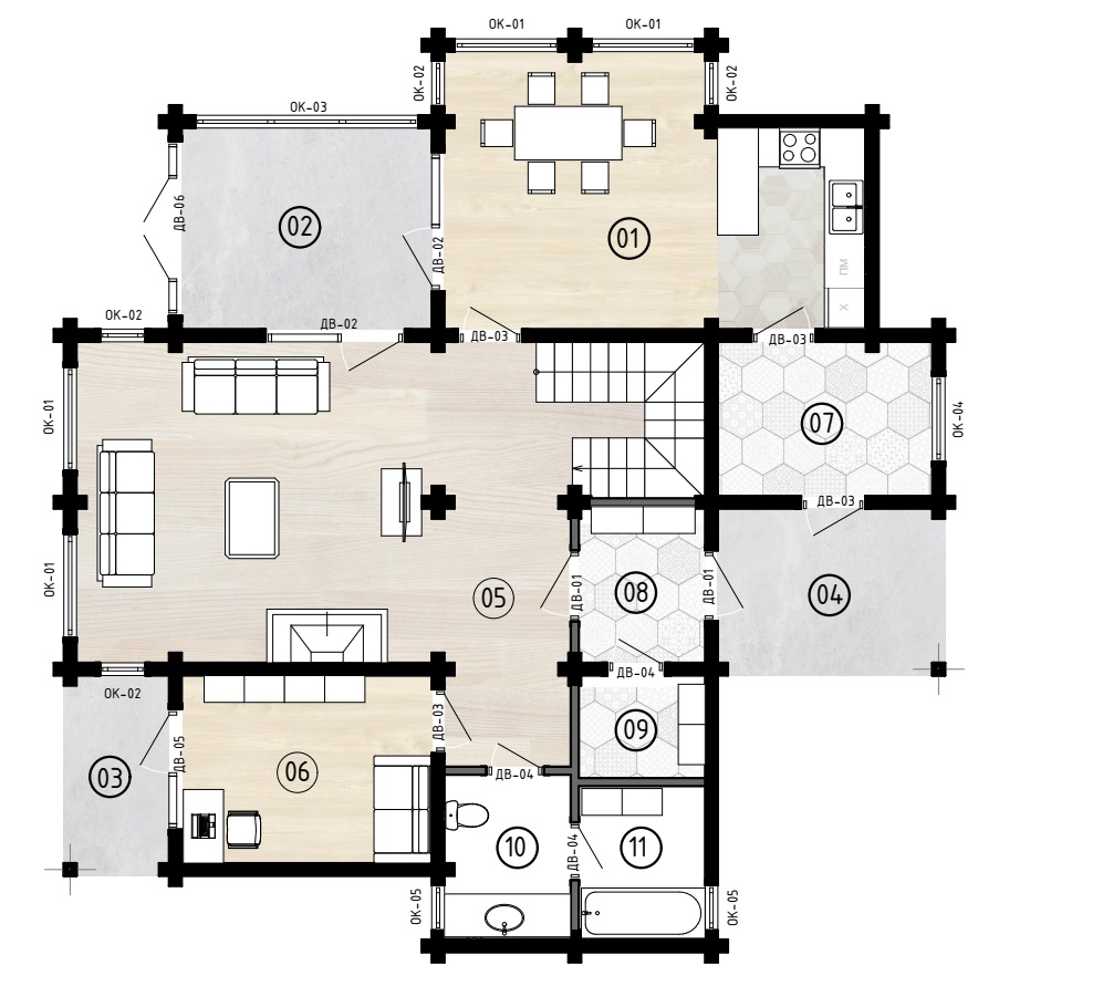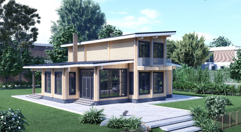 Огромный и очень презентабельный двухэтажный дом из профилированного бруса, общей площадью 200 кв. м. Впечатляющее разнообразие комнат, а также наличие зимней и летней веранд обеспечат комфортное проживание даже очень большой семьи. Этот дом из бруса приятно порадует как продуманностью внутренней планировки, так и элегантностью внешних форм.