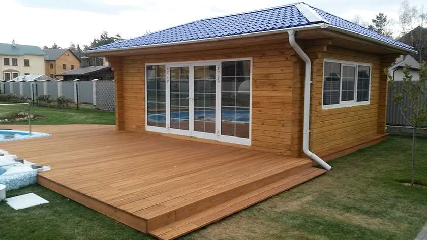 При строительстве элитных бань кедр также нашел свое применение благодаря тому, что обладает низкой теплопроводностью и практически не выделяет смолу при нагревании. Кедровая древесина, за счет своих обеззараживающих свойств практически не поддается гниению (что особенно важно для бань), кедр не растрескивается и долго сохраняет красивый внешний вид. Если добавить, что кедр не поддается ни коррозии, ни действию химикатов, а его запах способен отпугивать насекомых, станет понятно, почему кедр является элитным материалом для строительства бань из профилированного бруса.
